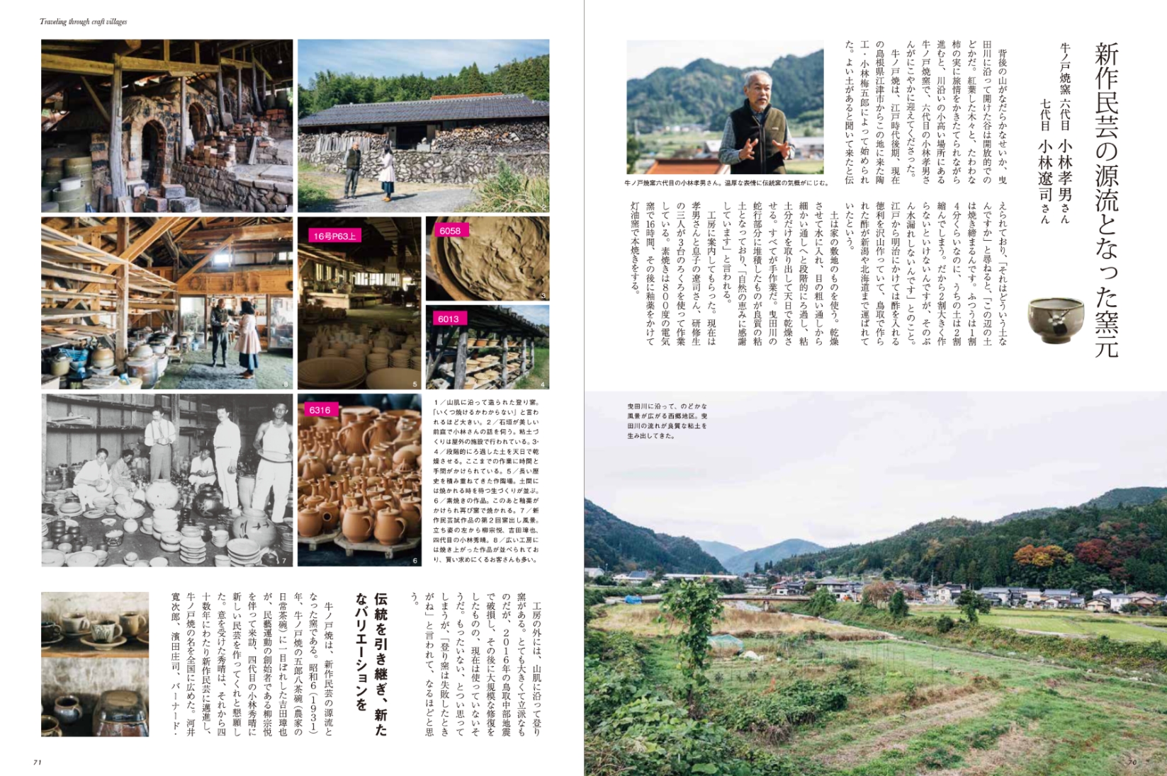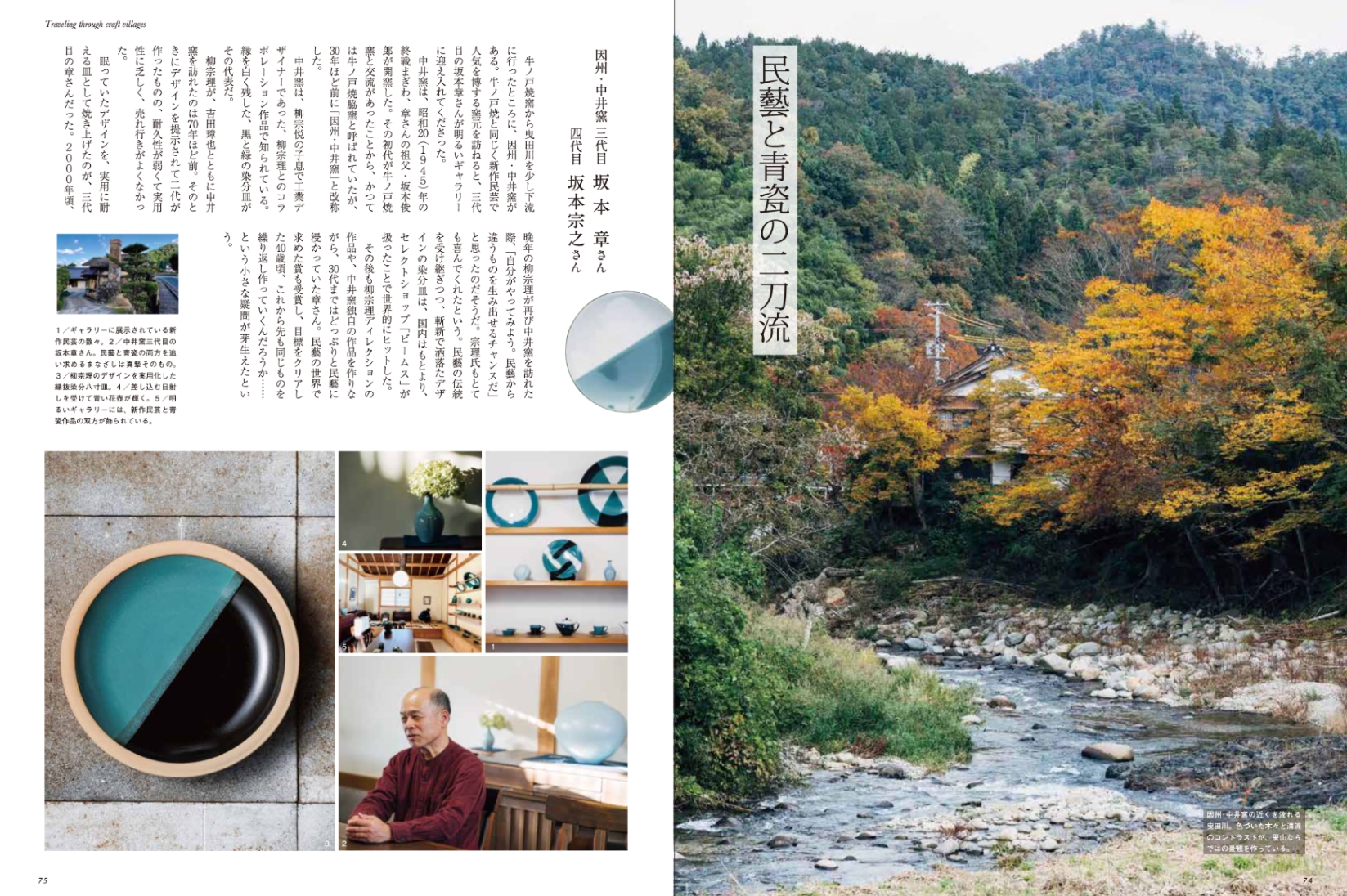 ● 特集:山陰うまいもの探訪記「のんびりカフェ散歩」。次々と新しいカフェやロースターがオープンしている山陰。どこにいても、至福の一杯を味わうことができるようになりました。あえて珈琲だけでなく拘りのカフェを選んでみました。新しいひみつの山陰に出会えます。● あなたに会いたくて:星取県を旅する。● 山陰の匠を探す「民藝と出西窯多々納弘光の軌跡」。山陰は、柳宗悦らが提唱した民藝運動が、いち早く広まったところで。柳とともに民藝運動の先頭に立った河井寬次郎が、島根県安来の出身であったことが大きく、本誌では12年ほど前から、民藝の巨匠たちを紹介してきた。巨匠たちの姿をより鮮明に伝えようと、直接教えを請うた山陰の人たちの声を拾ったが、その際には必ずといっていいほど登場したのが出西窯陶工、故多々納弘光氏である。民藝の巨匠たちをあらためて紹介し、氏の生涯を辿らせていただく。